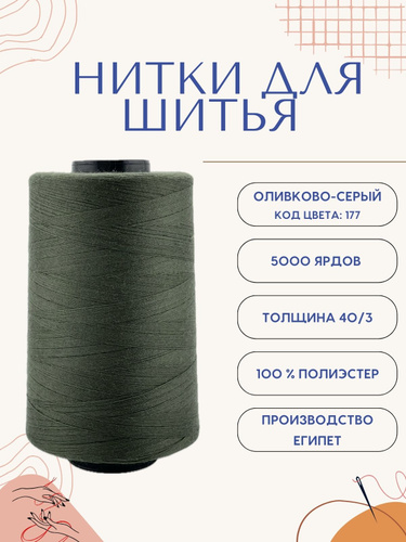 Нитки для шитья 40/3, 5000 ярдов, темно-серые
