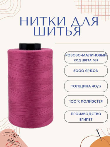 Нитки для шитья 40/3, 5000 ярдов, малиновые