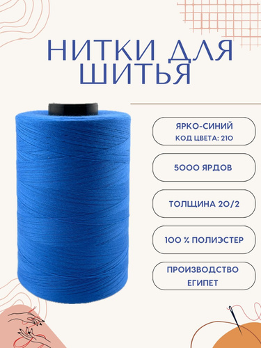 Нитки для шитья 20/2, 5000 ярдов, ярко-синие