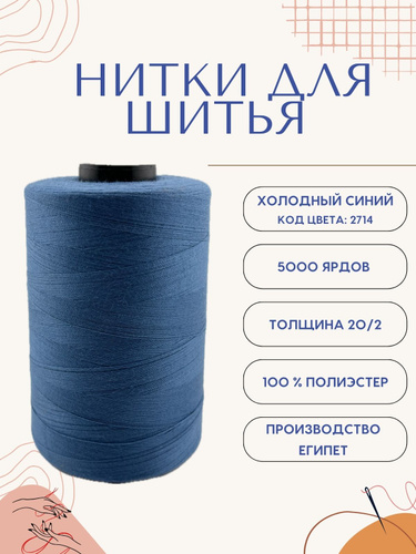 Нитки для шитья 20/2, 5000 ярдов, синие
