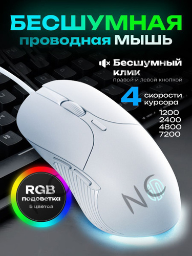 Мышь проводная Мышь проводная с подсветкой бесшумная, белый