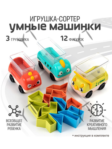 Сортер для малышей Грузовички. Развивающие игрушки от 1 года, головоломка. Набор машинок, Монтессори для де --YT