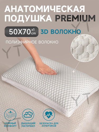 Подушка S34TQ6 50x70 см, Средняя жесткость, Полиэстер, Полиэфирное волокно